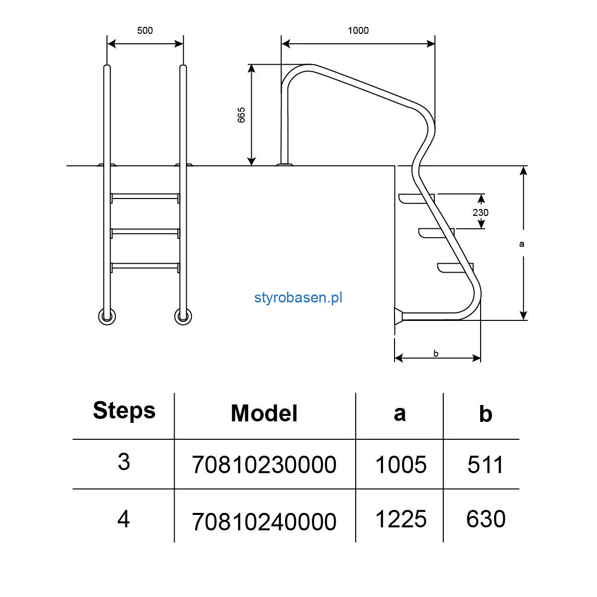 Drabinka basenowa łatwego dostępu Hayward EAF4 wykonana z wysokogatunkowej stali ANSI-316 odpowiedniej dla basenów o głębokości 130 - 160 cm,