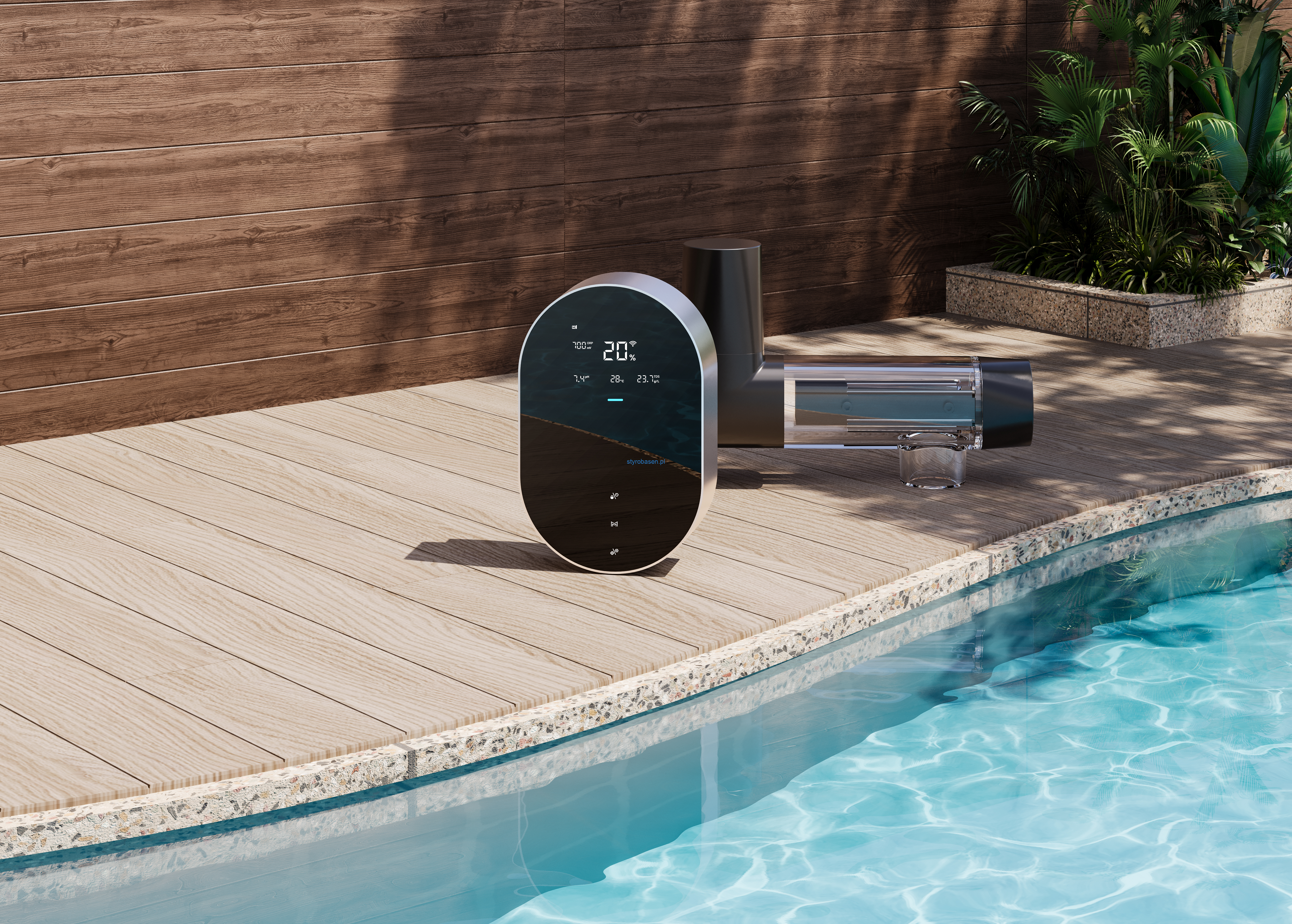 - Inteligentna kontrola jakości wody – automatyczna regulacja chloru i pH