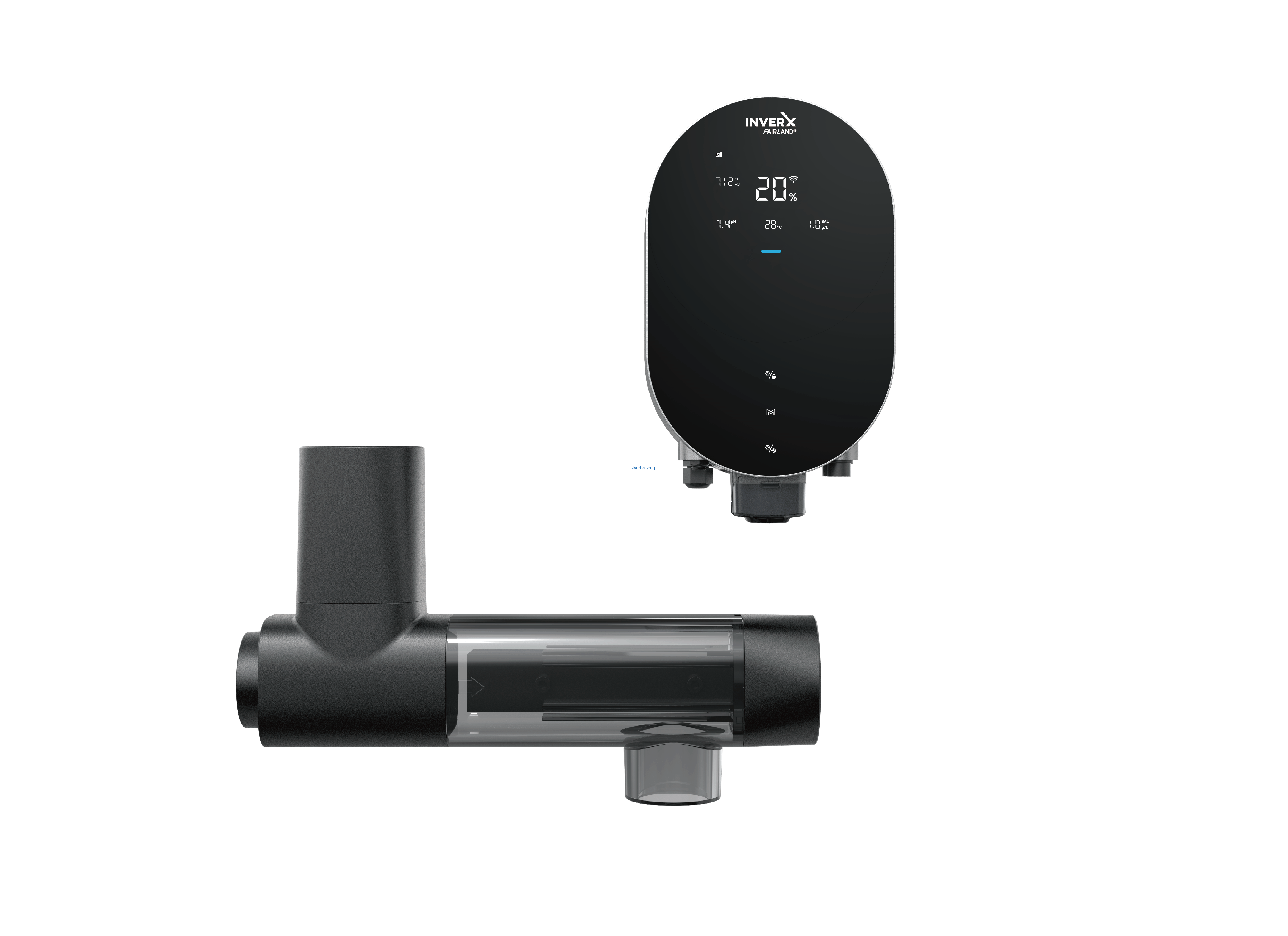 Elektrolizer soli Fairland Inverpure Pro MLS23 (23,0 g/h) do basenów objętości 30 - 70 m3 z regulacją pH (pomiar pH i pompa dozująca w komplecie) oraz pomiarem potencjału REDOX