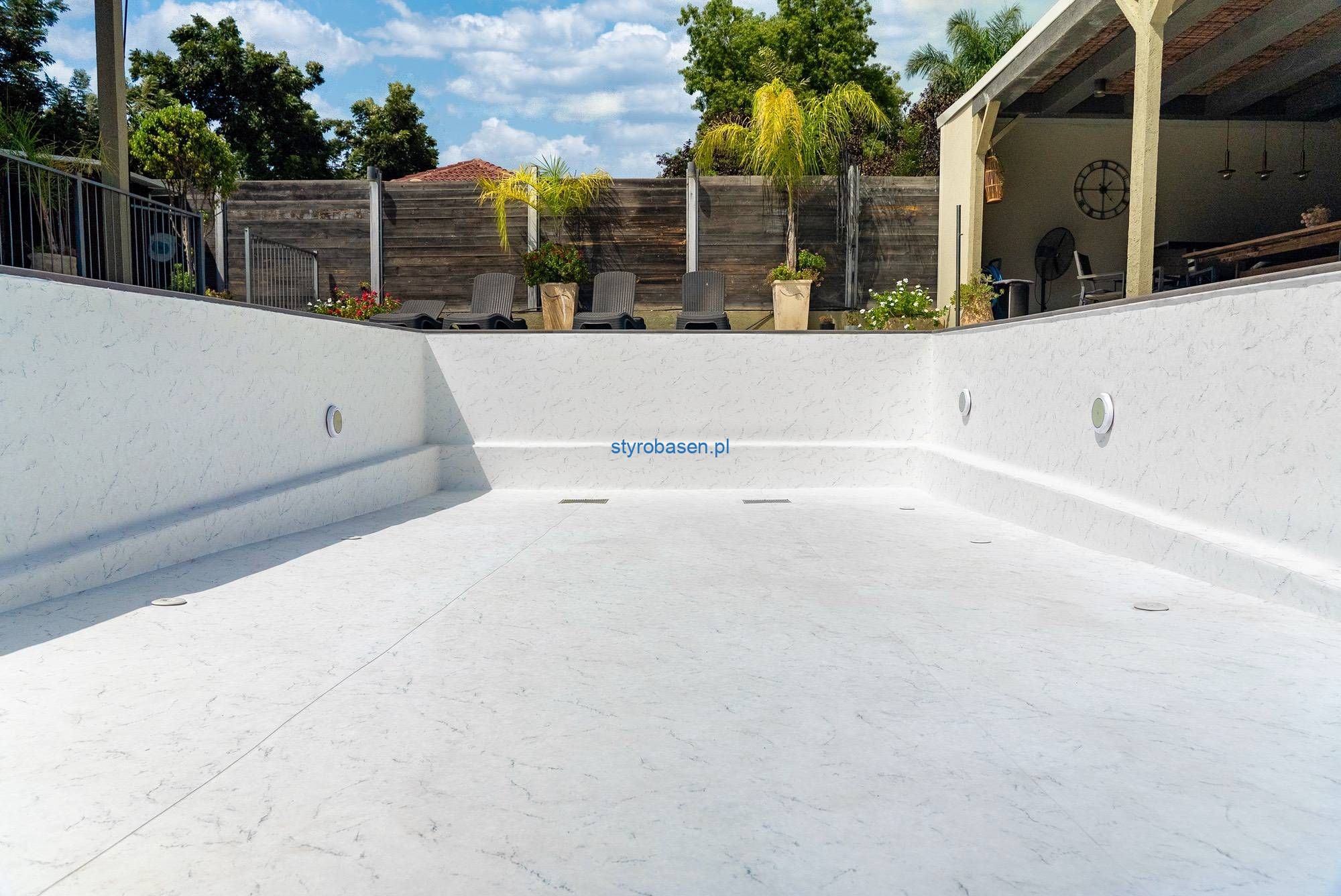 Z wody jego kamienna faktura podkreśla autentyczny mineralny wygląd, podczas gdy po zanurzeniu basen przekształca się w uderzający królewski niebieski – tworząc żywe i luksusowe wrażenia pływackie.