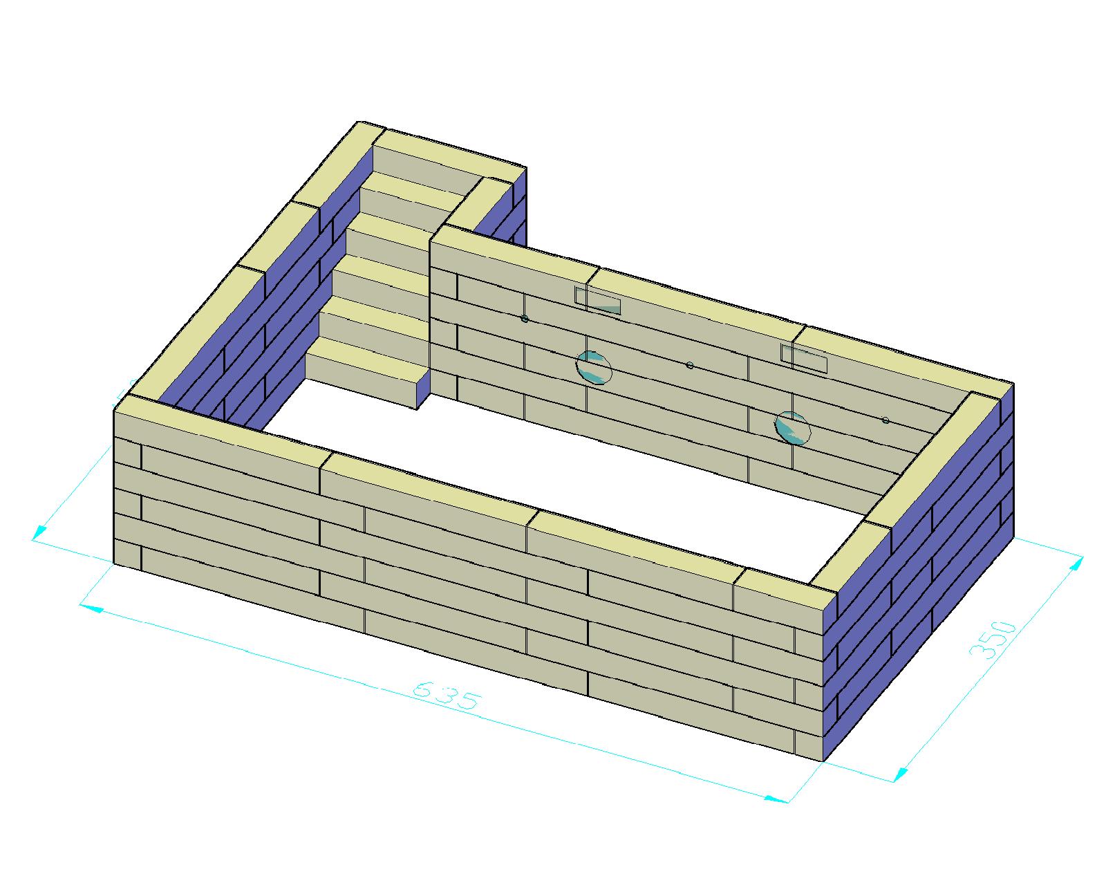 Bloczki styropianowe posiadają standardowe wymiary dł. 100 x szer. 25 x wys. 30 cm, produkowane są w formie prostej lub giętej o różnym kącie. To właśnie te ostatnie pozwalają na budowanie basenów o zupełnie dowolnych kształtach. Wypusty montażowe bloczków pozwalają na szybki montaż. Przestrzeń między dwoma warstwami bloczków wypełnia się lekkim betonem, który nadaje sztywność całej konstrukcji.